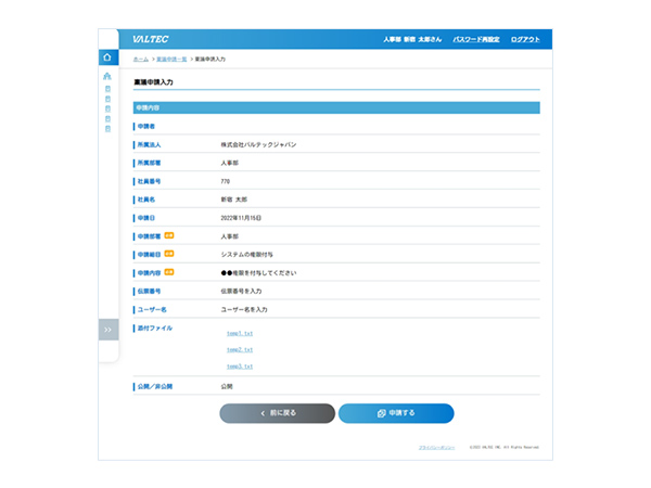 社員の異動登録や履歴確認、それに伴う社員寮の申請・承認