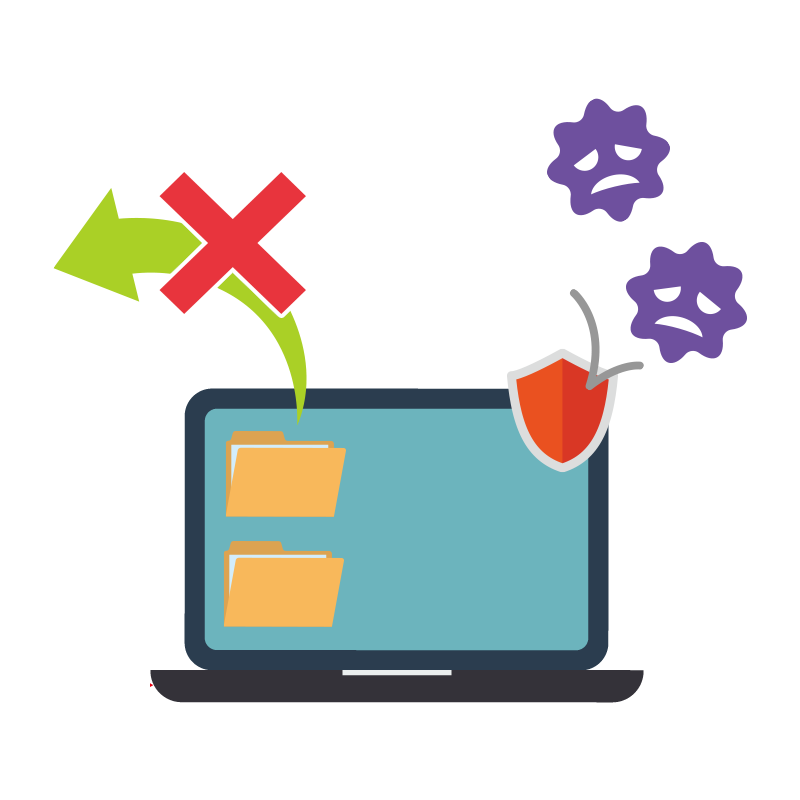 利用中のファイルの持ち出しは禁止、更にウィルスにも強い構成で、 高いセキュリティ性を担保します。ファイル持ち出し禁止・許可設定は、管理者がリモートで変更が可能です。